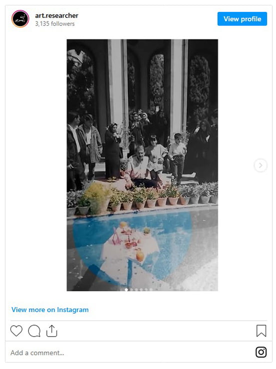 درباره این اثر منتخب که یکی از مجموعههای اوست، فصاحت و طراوت یک فرهنگ با تمام عناصر به کار رفته در یک کادر و قاببندی که هم میتوان با پنجره و هم با نقاشی دیواری و سفرهآرایی صد سال گذشته تطبیق داد.