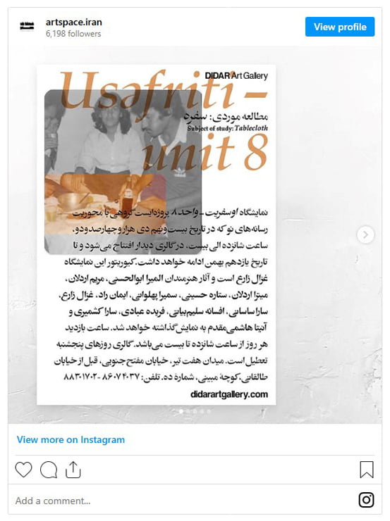 سفره به عنوان یکی از مفاهیم نمادگرایانه فرهنگ اقلیم ایران، بستری است که بانی شخصیت و اعتبار، تقدسبخشی به افراد است و در ادبیات مذهبی، سیاسی، اجتماعی و اقتصادی نقش پررنگی دارد. سفره مفهومی به وسعت گسترده شدن به امید سیر شدن هر چه گرسنه است دارد. پروژهی کیوریتوریال «اوسفریت-واحد۸» با پژوهش چندینساله غزال زارع، ما را به نظاره روایتی متفاوت از مفهوم سفره به عنوان چهارچوبی در سطح که نحوه ارتباطات انسانی باعث و بانی آن است، دعوت میکند.